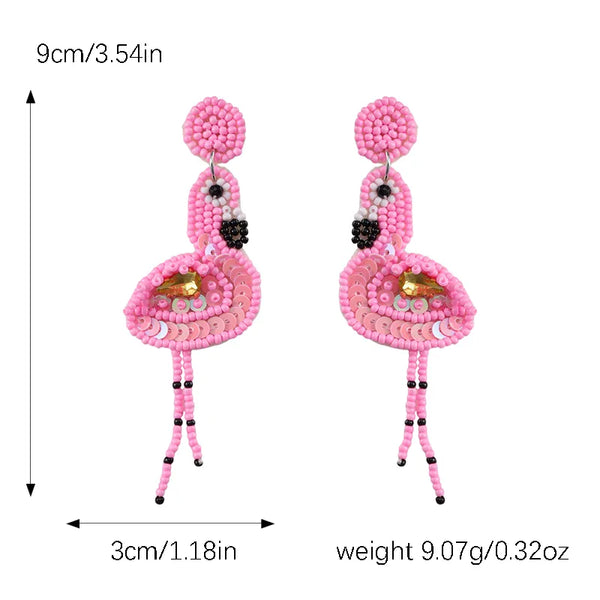 The Seed Bead Flamingo Earrings are the perfect accessory for any tropical vacation or for any flamingo lover looking to make a bold statement. These earrings are large, flashy, and eye-catching, sure to add a touch of fun and style to any outfit.
