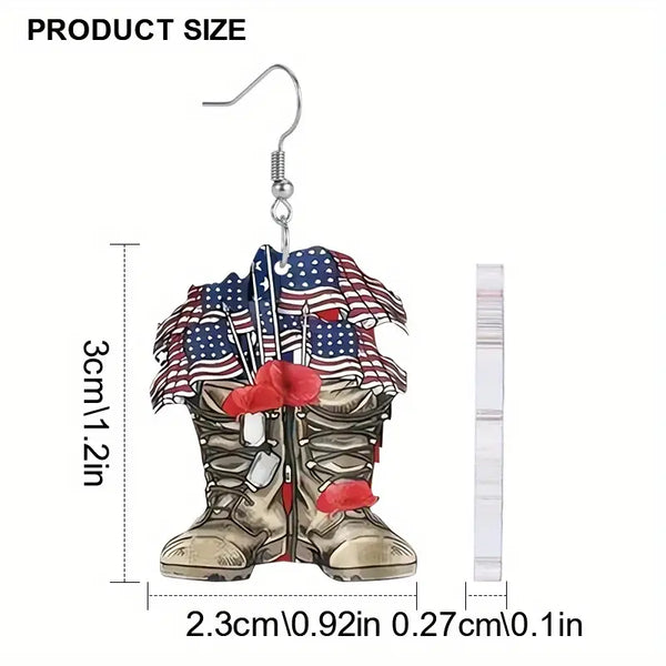 Expertly crafted for a touch of military pride, these Soldier Boot Earrings showcase the iconic boot design of the US Military. Made from durable acrylic, these dangle earrings are the perfect way for military wives to show their support for their loved ones. Make a statement with these unique and stylish earrings.